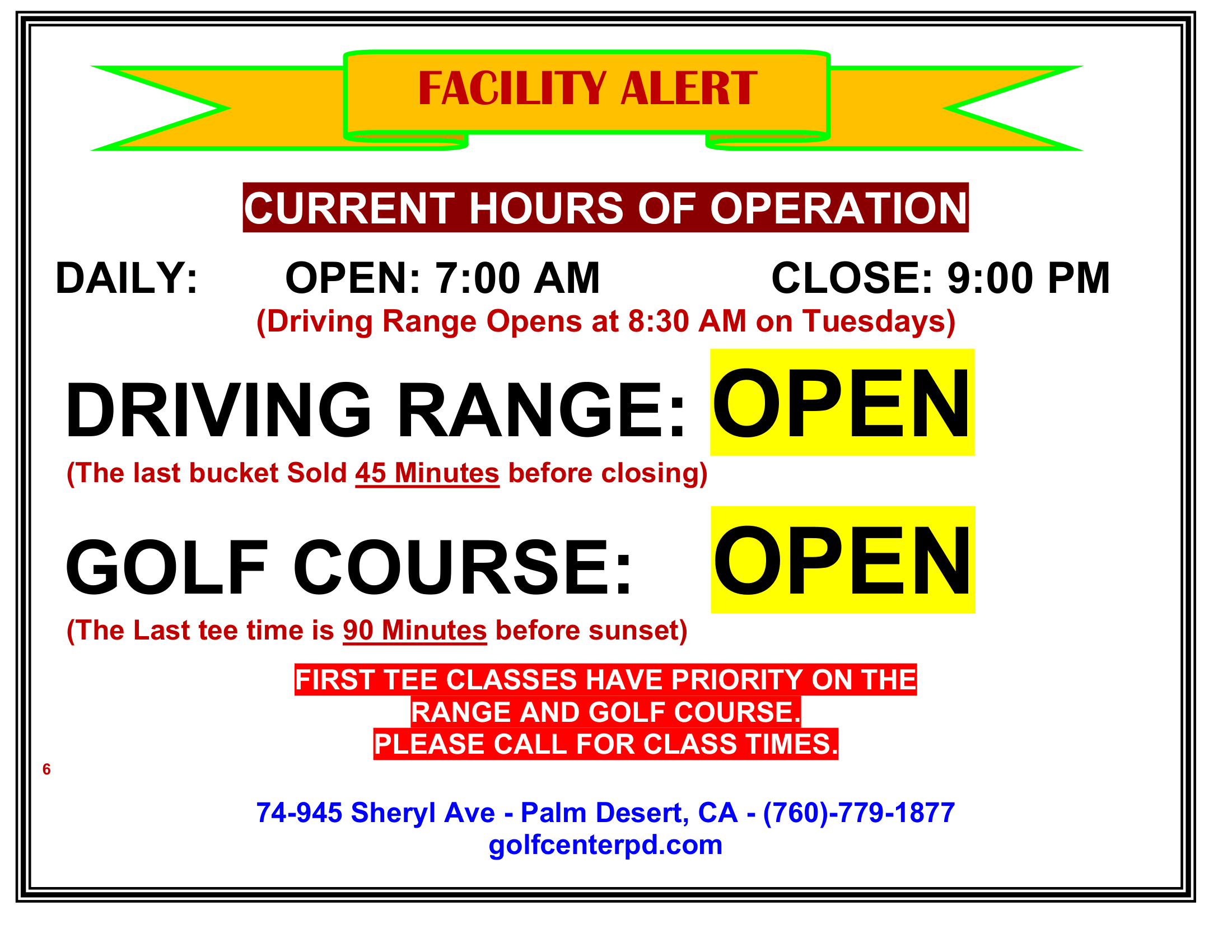Call The Golf Center at Palm Desert at (760) 779-1877